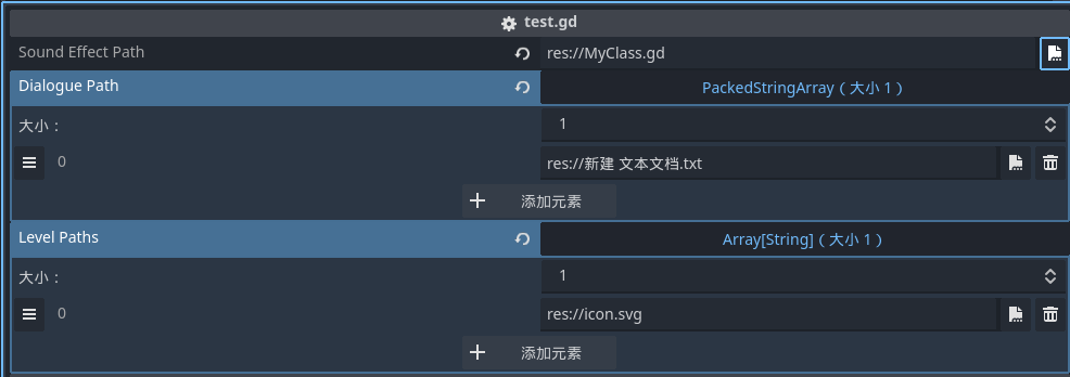导出属性,用作指向文件绝对路径,以选择文件的形式在检查器中编辑该属性,允许选择整个文件系统中的文件
